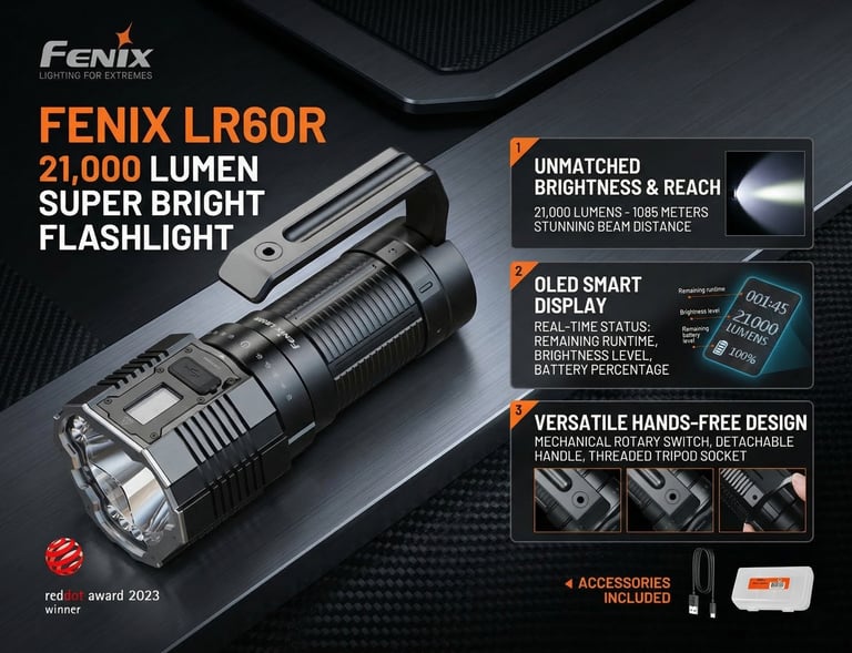 Fenix LR60R 21,000 Lumen Super Bright Flashlight
