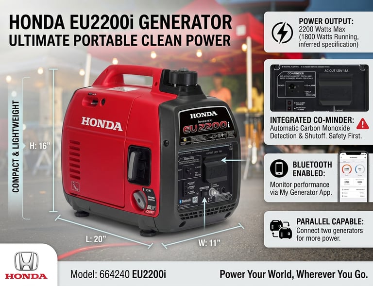Honda 664240 EU2200i 2200 Watt Portable Inverter Generator with Co-Minder